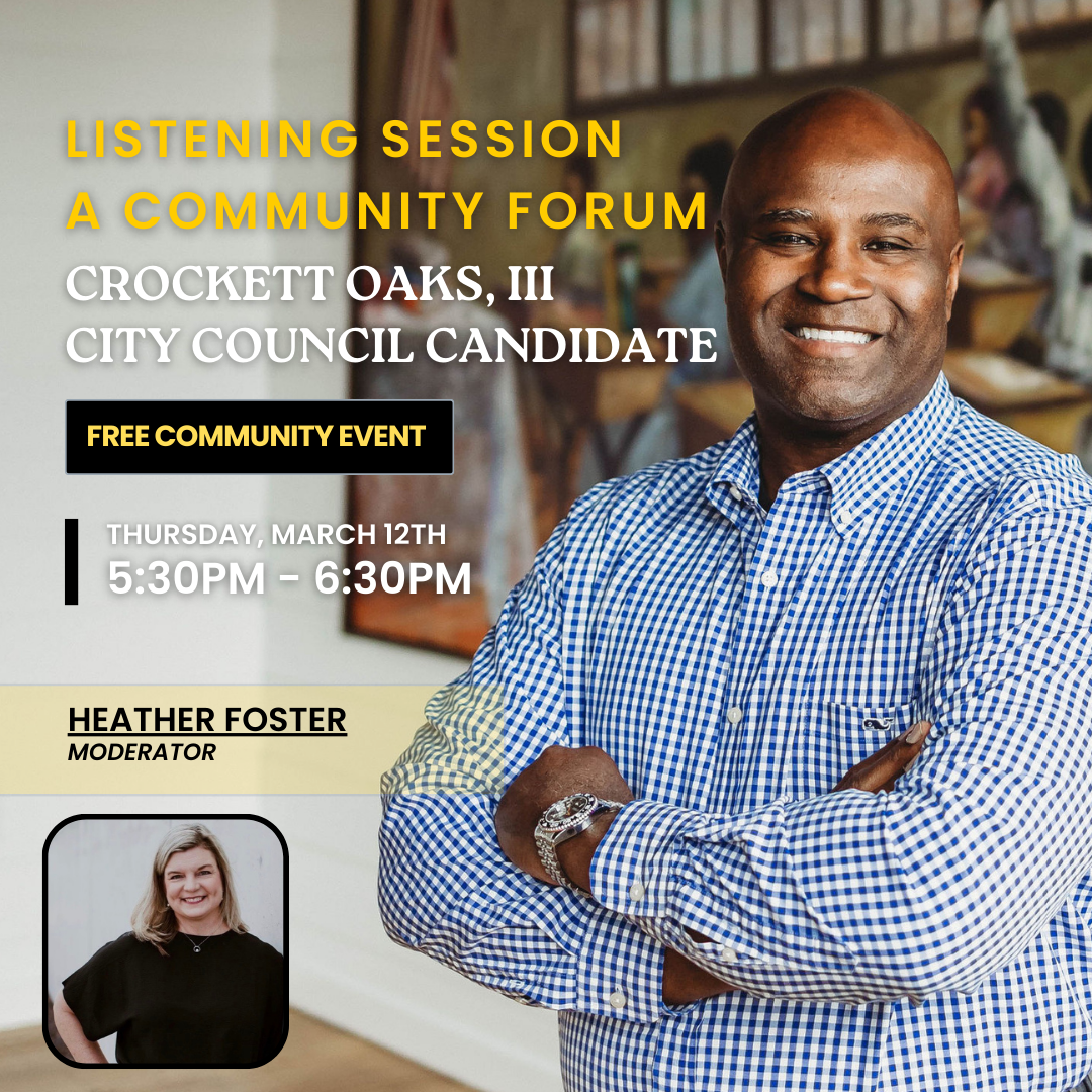 With the city election approaching on April 7th, I invite you to a Listening Session at the historic Lincoln School on March 12th from 5:30–6:30 PM.